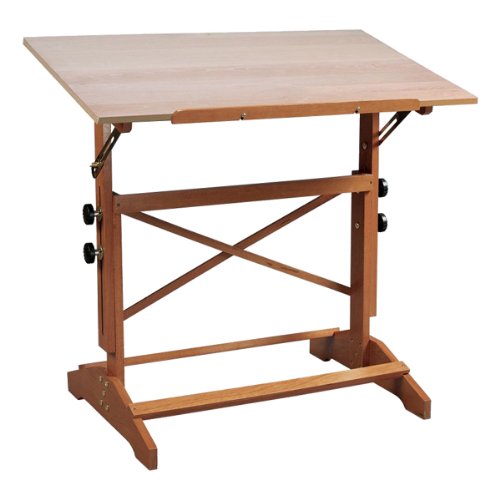 Alvin's Pavillon Art Table features brass hardware and a handsome cherry base that brings a classic look to your graphic arts studio. The solid hardwood frame supports a durable unfinished wood tabletop. Adjust the height and tilt to suit nearly any project.