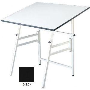 Portable, versatile, and so durable that it carries a lifetime guarantee. The Professional offers these outstanding features: |Angle adjustment from horizontal (0 deg) to 45 deg |Height adjusts from 29" to 45" in the horizontal position |Folds quickly and easily to 4" width for portability |Base is 1" square steel tubing |Non-skid self-leveling feet |Warp-free white Melamine(R) tabletop |Base in white or black powder coat finish