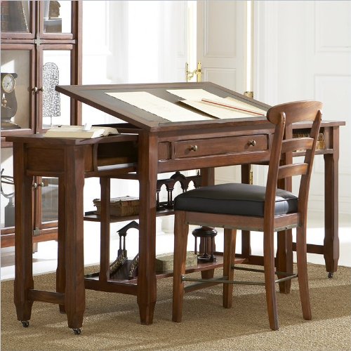 You don't have to be an architect to fall in love with the kathy ireland Portland Loft Expandable Architects Desk. Inspired by the Americana Style Guide, this exquisite desk gives you the spacious workspace you need with a brand that's synonymous with quality and style. Suitable for home or office, this desk is crafted from superior hardwood solids and select veneers for durability. Designed with your comfort in mind, the desktop adjusts so you can change the height to suit your needs. Pullout side extensions expand the desk width from 60 inches to 100. Two open cubbies, one adjustable shelf, and one fixed shelf provide storage for books, office supplies, and more. Complete with a convertible keyboard/pencil drawer, this desk is finished on all sides so you can place it anywhere in the room. The clove finish and antique-brass hardware enhance the charm of this designer desk. Fully assembled for your convenience. Additional Features: Desktop surface adjusts to desired height Convertible keyboard/pencil drawer 2 storage shelves Expandable legs with open storage compartments Dovetail drawer construction Ball-bearing drawer glides Finished on all sides About kathy ireland Home by Martin Furniture A well-known industry-leading manufacturer of home office and home entertainment furniture, kathy ireland Home by Martin exemplifies kathy ireland's mission statement: ''Finding solutions for families, especially busy moms.'' As Chief Designer, Kathy collaborates with kathy ireland Home by Martin and kathy ireland Office by Martin on the design and marketing of each and every furniture collection. Each collection is designed and constructed with four words in mind: fashion, quality, value, and safety. About Martin Furniture Martin Furniture was founded in 1980 by Gil Martin in the San Diego suburb of El Cajon.