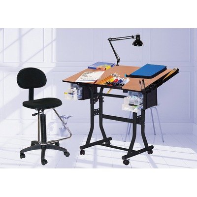 NEW! Martin Creation Station Art-Hobby Table and Chair Set, Black with Tiltable Cherry Top, 24-Inch by 40-Inch Size Surface best price