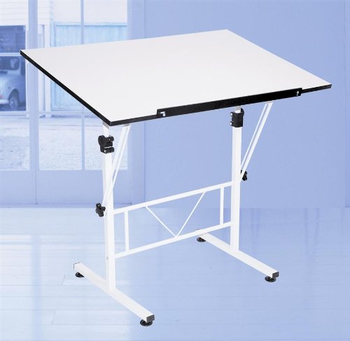 The Martin Universal 36 x 24 in. SMART Hobby & Craft Table can be adjusted to accommodate youth to adult artists. Simply use the easy-grip knobs to adjust the height anywhere from 27.5 inches to 32 inches, and tilt from flat to almost vertical. This table has a large 24-inch by 36-inch white laminate top with pencil ledge. The strong steel base has a white powder-coat finish, and a cross-braced frame with foot levelers adds stability to the work surface. You'll find that this drawing table is easy to clean and doesn't take up much room. About Martin Universal/F. Weber Co. For a century and a half, the name Martin Universal and F. Weber Co. have been synonymous with quality art materials. Established in 1853 in Philadelphia, Pa., the Martin/Weber is the oldest and one of the largest manufacturers of art materials in the United States. Table adjusts from 27.5 to 32 inches. Durable white laminate table top, steel base. Cross-braced frame, with foot levelers for stability. Some assembly required. Dimensions: 36W x 24D x 27.5H inches.