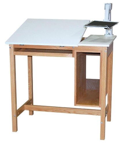 A pull out keyboard tray and an adjustable monitor arm enhance this durable wood computer table, featuring a clear lacquer finish and a white resin drafting table top. The table features a raised CPU storage compartment and is available in your choice of size options. Table is standard with an adjustable monitor arm and pull out keyboard tray that is fitted with metal ball bearing slides . White fiber resin core top . No tool drawers . Table is finished with multiple coats of clear furniture grade lacquer . Assembled with thru-bolt construction . Top: 30 in. x 30 in. . 30 in. L x 42 in. W x 39.5 in. H (100 lbs.) . 30 in. L x 48 in. W x 39.5 in. H (105 lbs.)