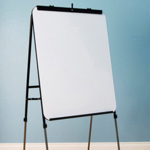 Ideal for presentations or for creation, the Studio Designs Deluxe Presentation Easel is a durable, dependable piece you shouldn't go without. Built from a durable metal body with a silver and black powder coat finish, this unit has a wet/dry erasable whiteboard surface that measures 28W x 36H inches. At the top is a sturdy metal clamp that keeps papers in place, making it ideal for presentations. Adjust the telescoping legs of this easel for use on the tabletop or floor; the height can go from 37 to 69 inches. The base measures 27 inches wide. Founded in 1985 in Pico Rivera, Calif., Studio Designs (formerly Studio RTA) offers a wide range of products, including art sets, drafting tables, craft tables, workstations, easels, and more. Designed for use in the sometimes-cramped environment of the home workstation, Studio Designs' products are innovative and affordable, while giving you the most for your money. Furniture for home office and creation should be something you can depend on, and Studio Designs keeps that in mind, with durable materials and quality craftsmanship to last you for years. Ideal for presentations or creation. Metal body with silver/ black powder coat finish. Erasable wet/dry whiteboard surface. Telescoping legs for use on tabletop or floor. Top clamp holds papers in place. 28W x 37 to 69H inches.
