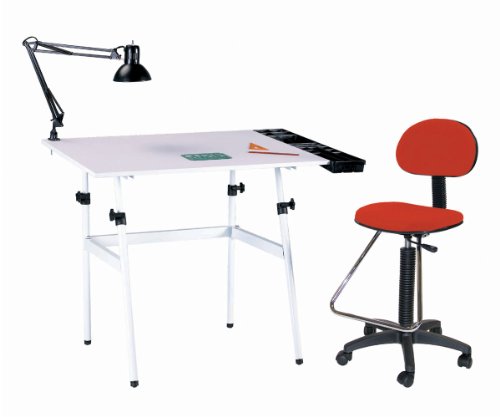 This Berkeley Classic Combo, includes our most popular Drafting height chair in RED, along with our Black Clamp-on desk lamp, Black Side Tray for tools and reference material. Table height from flat 29-53".Of course it is completed with the original folding table, the Berkeley Classic table base and a 30x42 top surface. (Requires assembly).